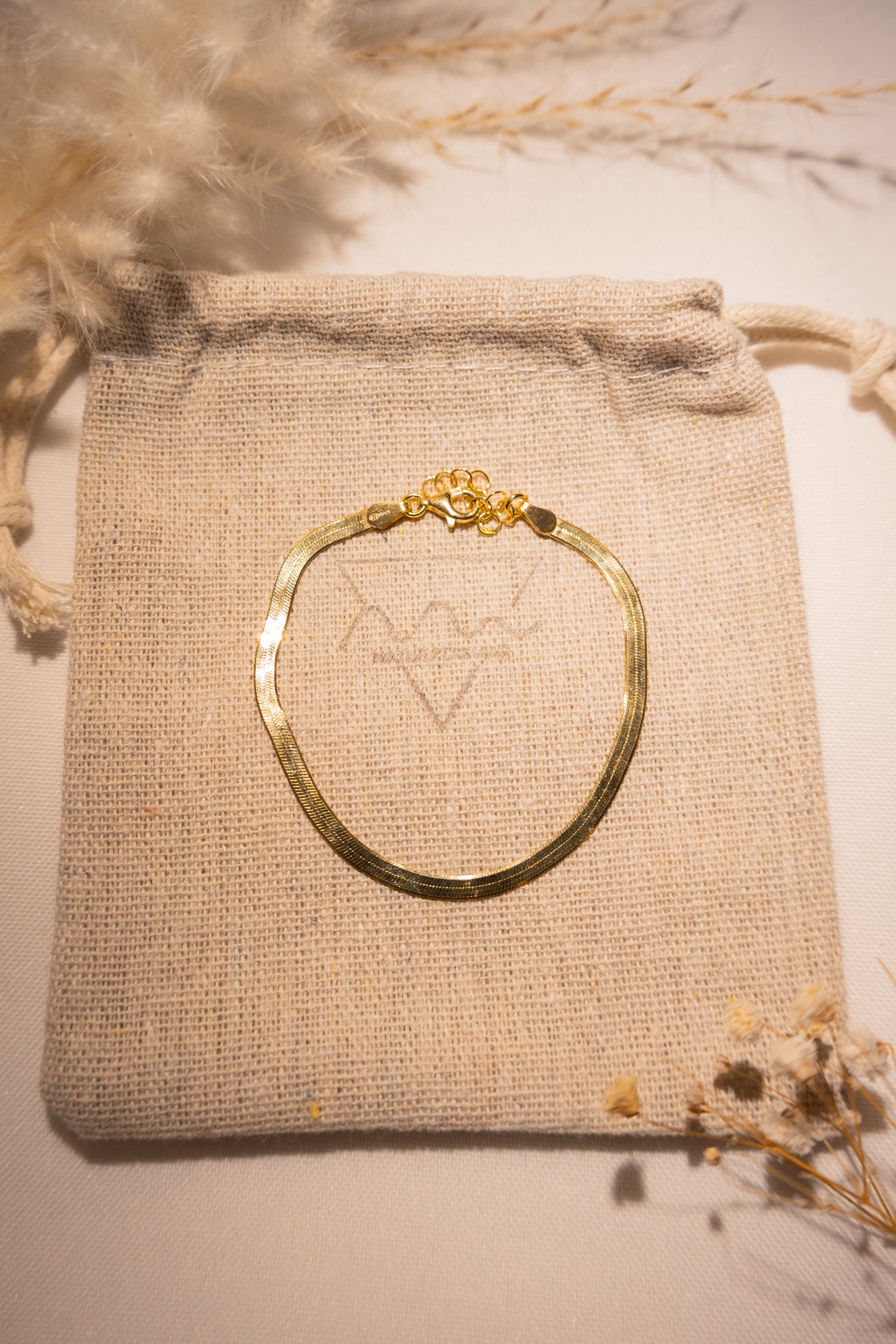 A delicate and versatile piece, this snake chain bracelet is crafted from 925 sterling silver with premium gold plating. Its minimalist design adds a subtle touch of elegance, perfect for wearing alone for a refined look or stacking with other bracelets for a trendy, modern style.