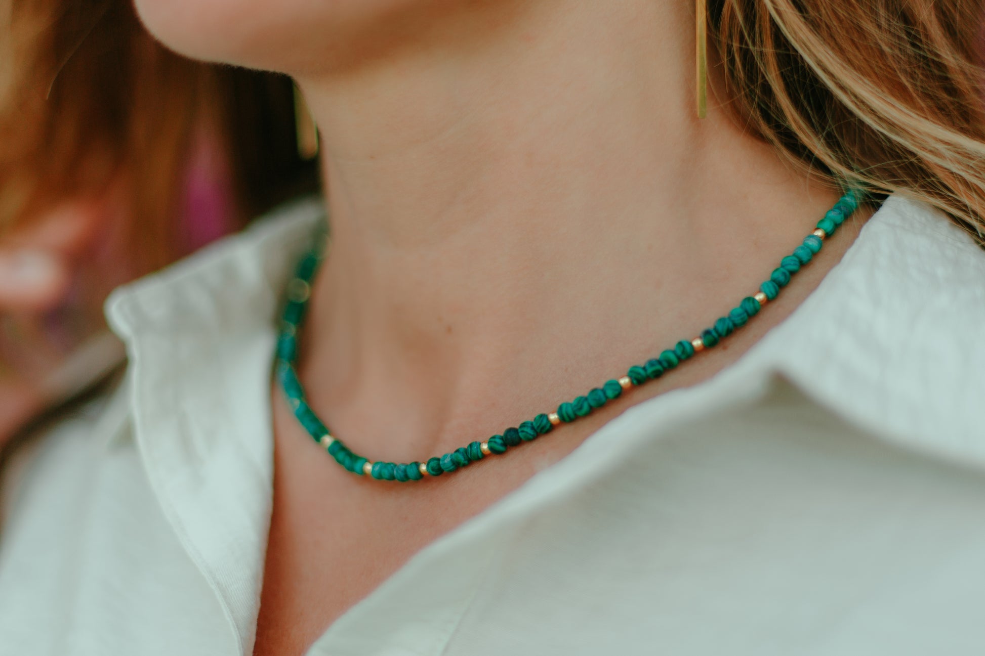 Discover the timeless elegance of our necklace, featuring a natural green stone with unique, mesmerizing patterns. Crafted from gold stainless steel, this necklace combines style and durability, keeping its brilliant shine over time.